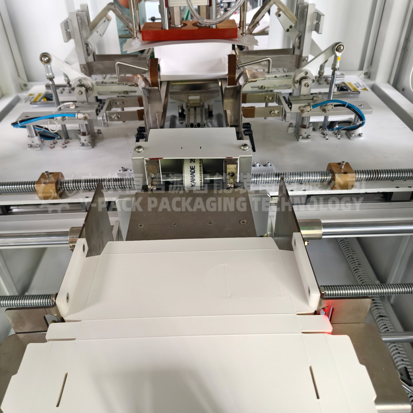 在线检测、纸盒吸取成形与传送、物料入盒、纸盒两端纸舌封装、缺料剔除及成品输出等全过程均属自动完成。