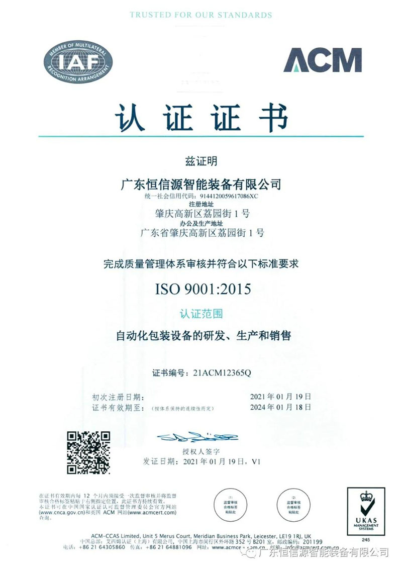2021年1月11日,我司通过了艾西姆认证中心组织的ISO9001:2015质量管理体系认证审核,并于近日获得艾西姆认证(上海)有限公司颁发的证书。